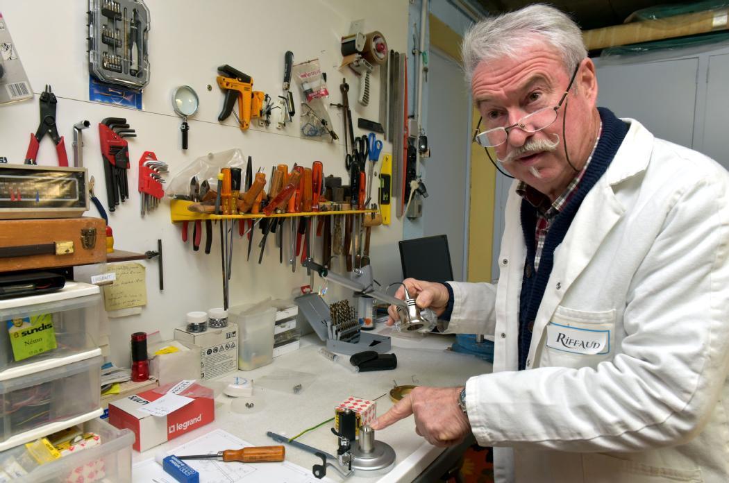 « Je travaille uniquement sur commande car c’est un peu de la haute couture. Ici, je fais très attention à la poussière car c’est l’ennemie des vinyles » prévient-il avec sa moustache en guidon, façon Brigades du Tigre. Revenu s’installer à Boisseuil à la retraite après avoir travaillé toute sa vie à Paris à la tête d’un bureau d’études spécialisé dans la climatisation, Pierre Riffaud, né à Saint-Jouvent, construit des platines vinyles de luxe depuis 1984. Une passion indéfectible « mais j’essaie de ne pas y consacrer plus de la moitié de mon temps libre. »